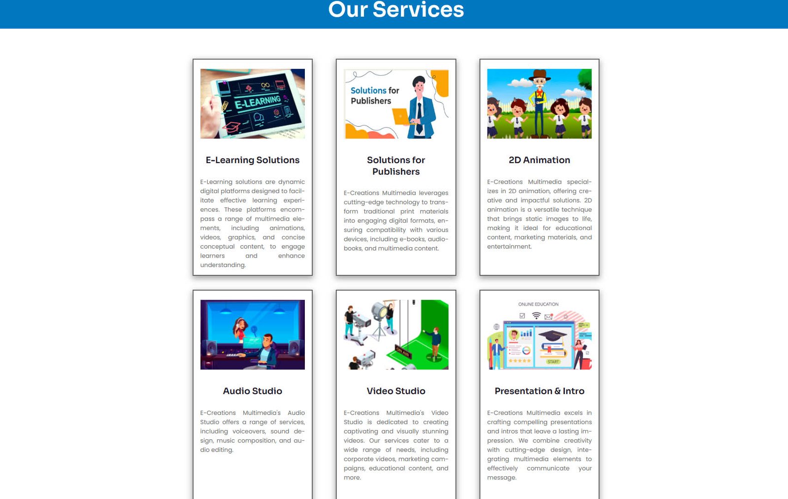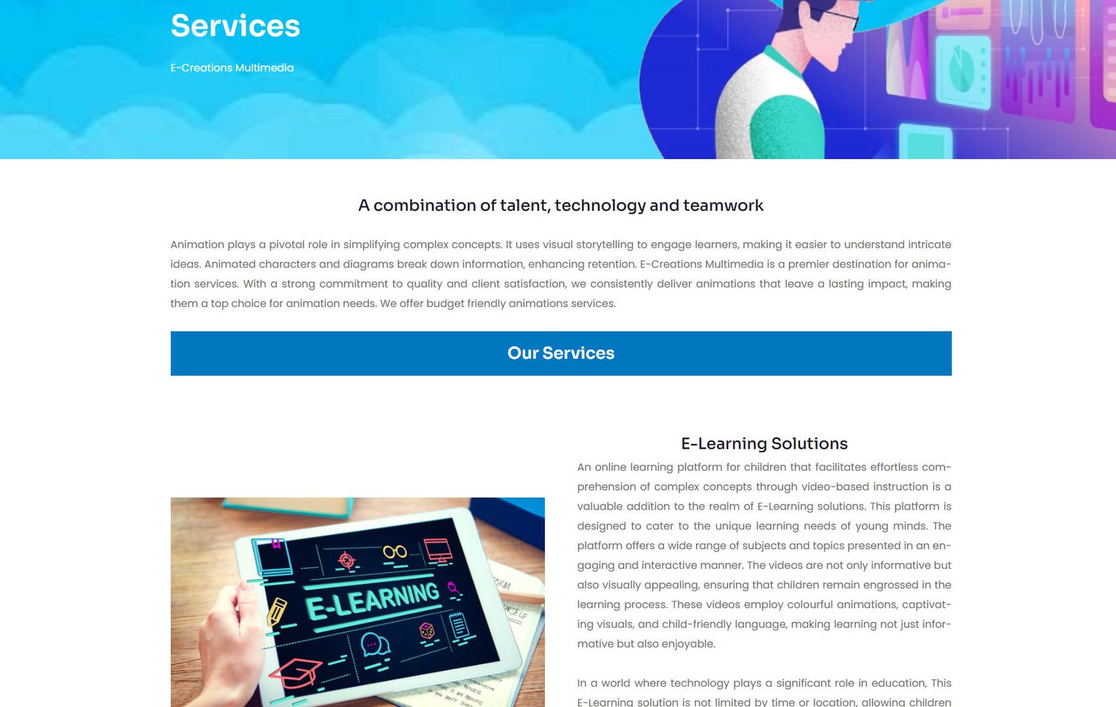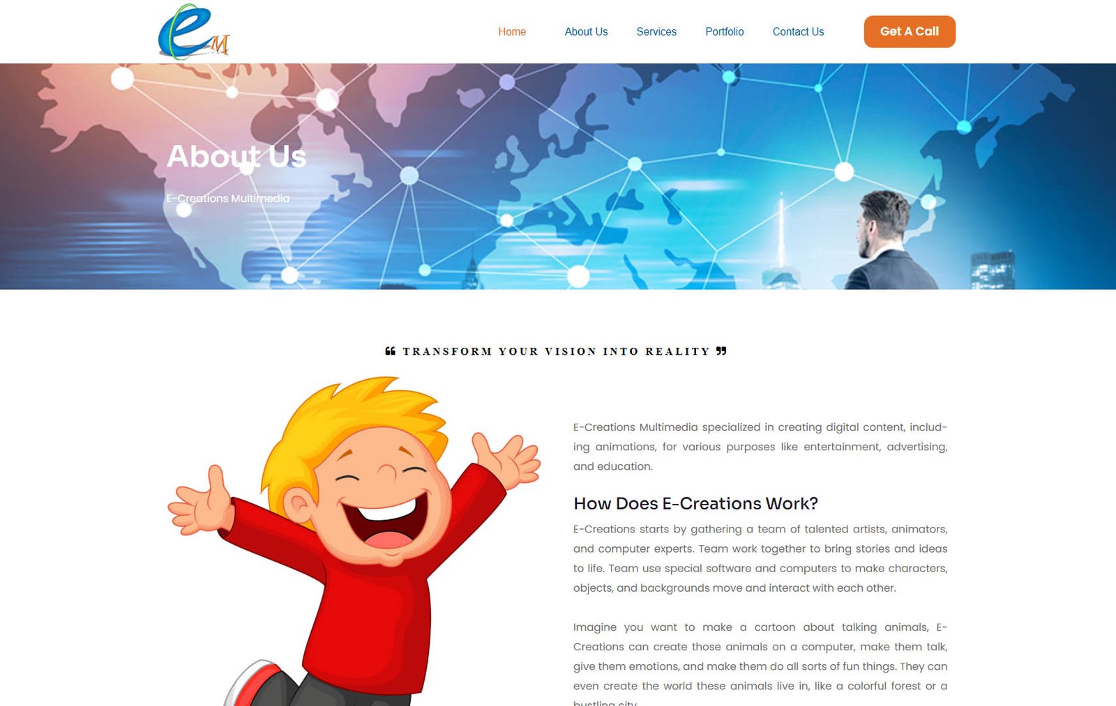 E-Creations Multimedia is bringing Imagination to Life. Our dedicated team of talented animators, designers, and storytellers is committed to delivering top-notch solutions for businesses, entertainment, and educational purposes.